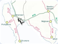 BY ROAD - To the East lies the A75 and the main route to Dumfries, the Borders and England. To the North the A77 goes through the popular town of Ayr and terminates in the City of Glasgow.